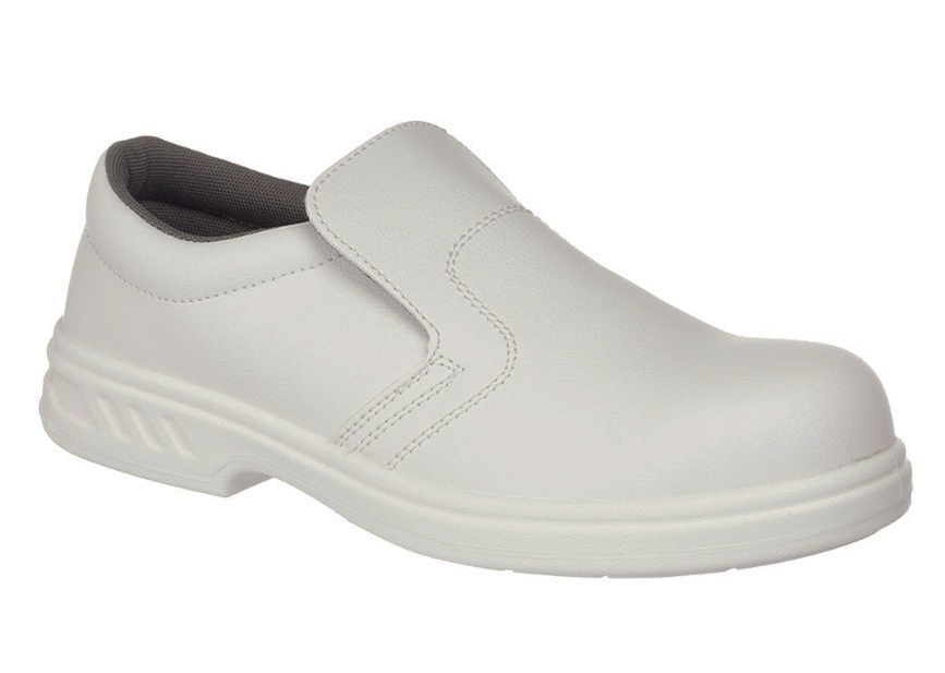 Outstanding slip-on style shoe ideal for medical and food industries. The easy to clean microfibre upper is practical, safe and durable. Steel toecap and excellent slip resistance.